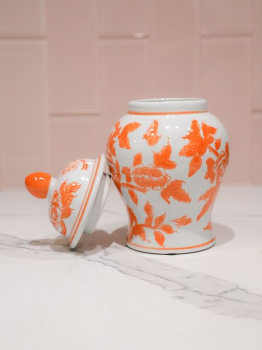 Bright Orange and White Ginger Jar with Lid