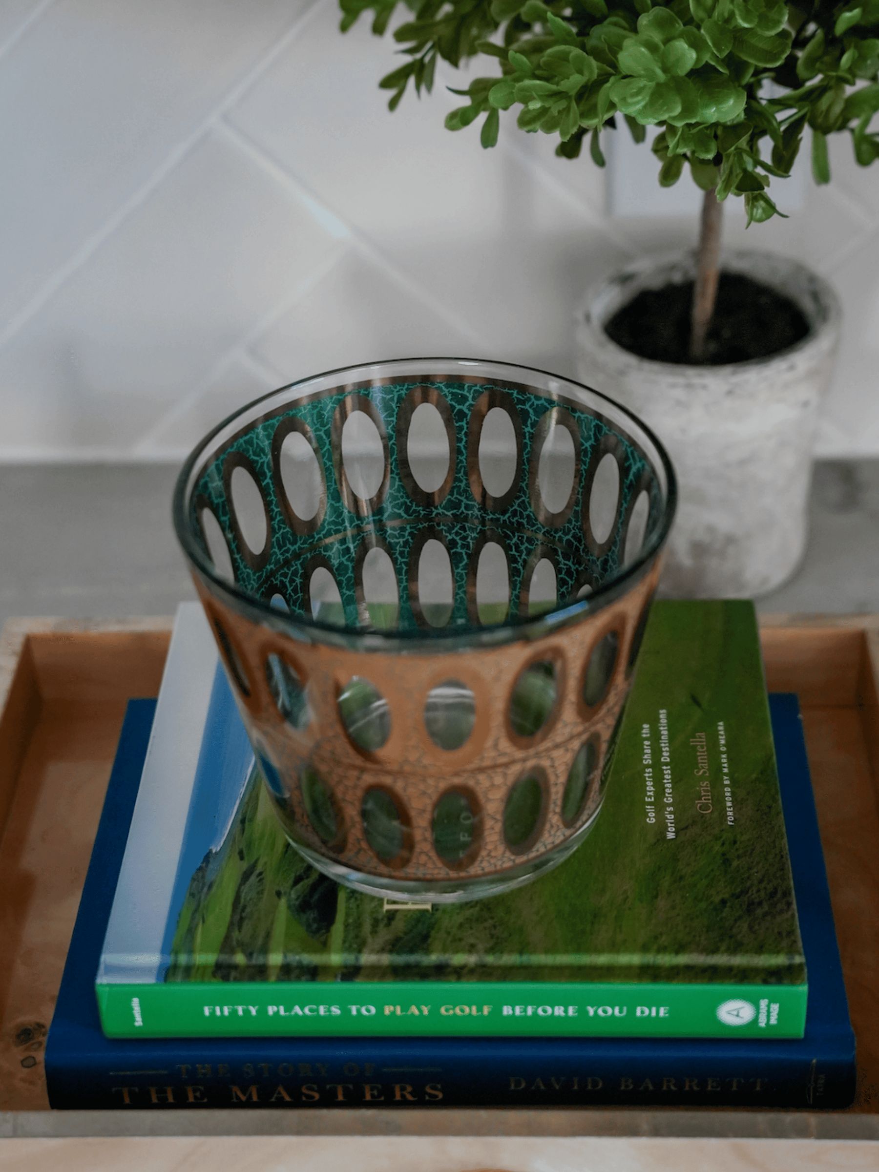 This is a beautiful vintage ice bucket by Culver - the turquoise and gold combo is stunning.